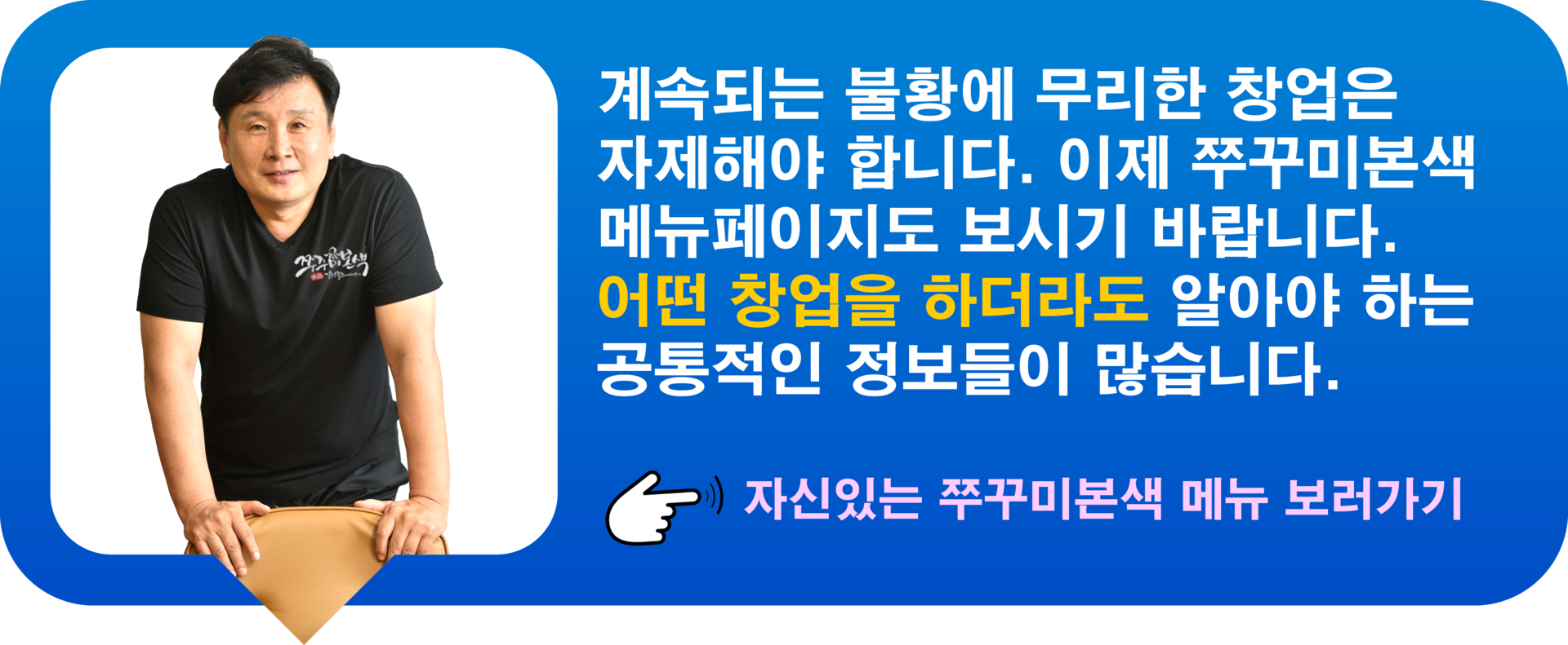 다른 업종, 다른 브랜드를 선택하시더라도 쭈꾸미본색과의 상담은 분명 도움이 될 것입니다. 함께 이야기해 보면 알게 됩니다.
